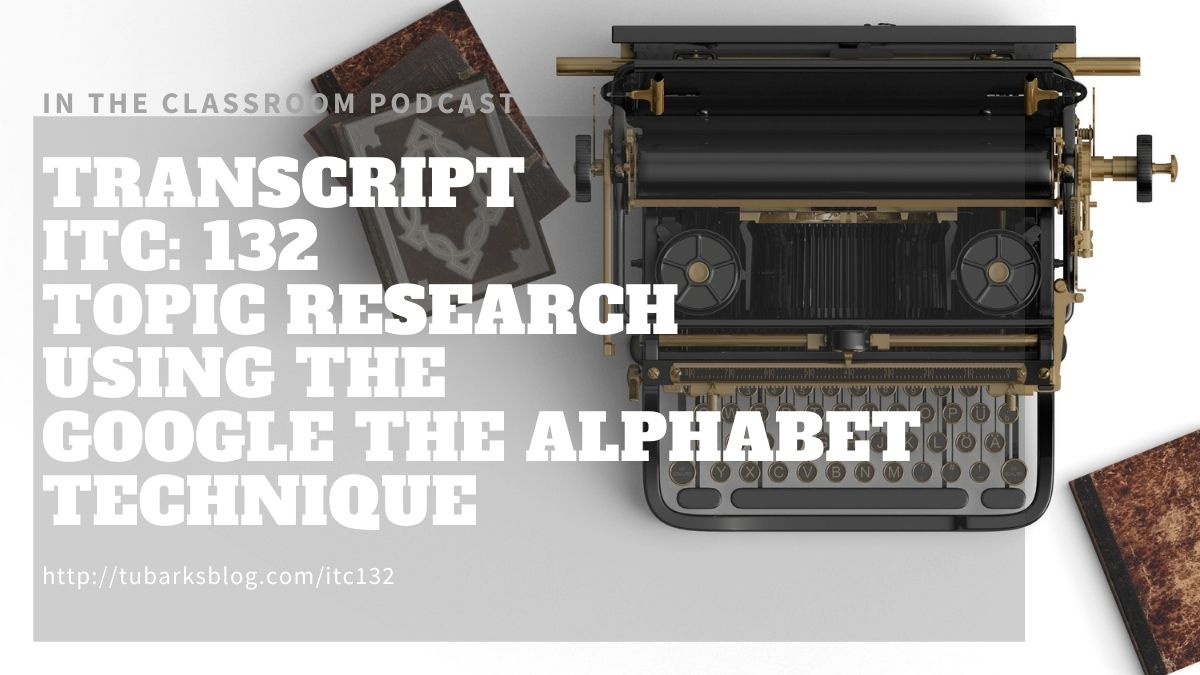 Transcript ITC: 132 – Topic Research Using the Google the Alphabet Technique